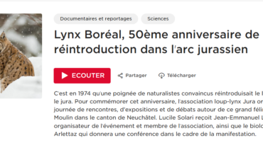 Nov50 ans du retour du Lynx en Suisse: Avenir Loup Lynx Jura fait écho dans les médias